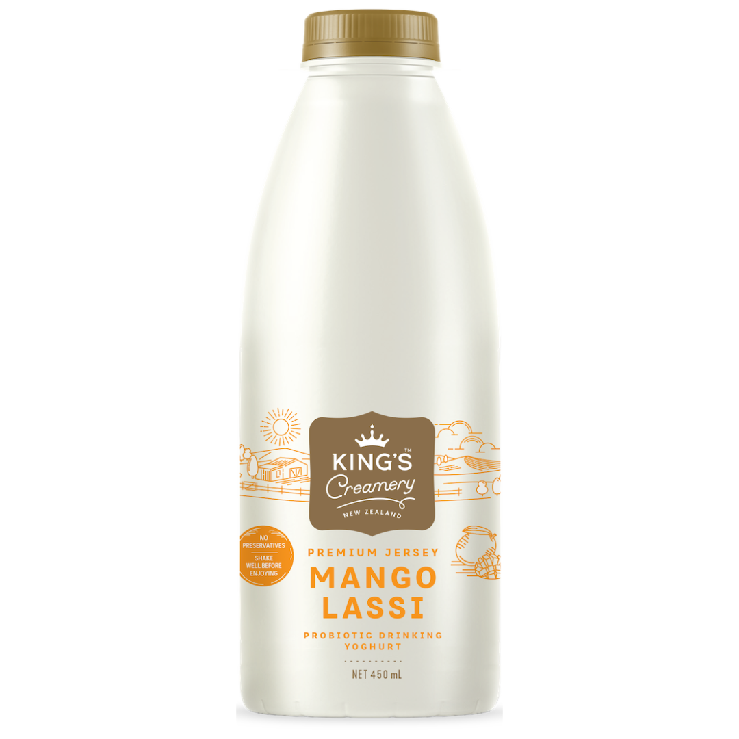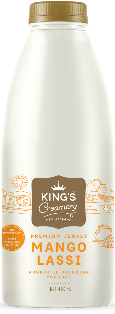 King’s Creamery Premium Jersey Mango Lassi is made with fresh Waikato Jersey milk and packed with live cultures producing millions of probiotics. Collected fresh each morning, our Jersey milk is transformed into a delicious probiotic drinking yoghurt by the afternoon. Perfect for quenching your thirst and improving your gut health, what’s not to love?