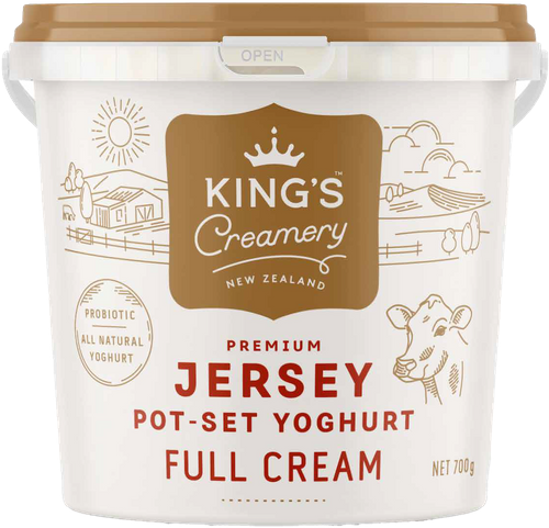 King’s Creamery premium Jersey yoghurt is made with fresh Waikato Jersey milk and live cultures producing millions of probiotics. Collected fresh each morning, our Jersey milk turns into a delicious pot-set yoghurt by the afternoon. With no added sugars, preservatives, additives or stabilisers, what’s not to love